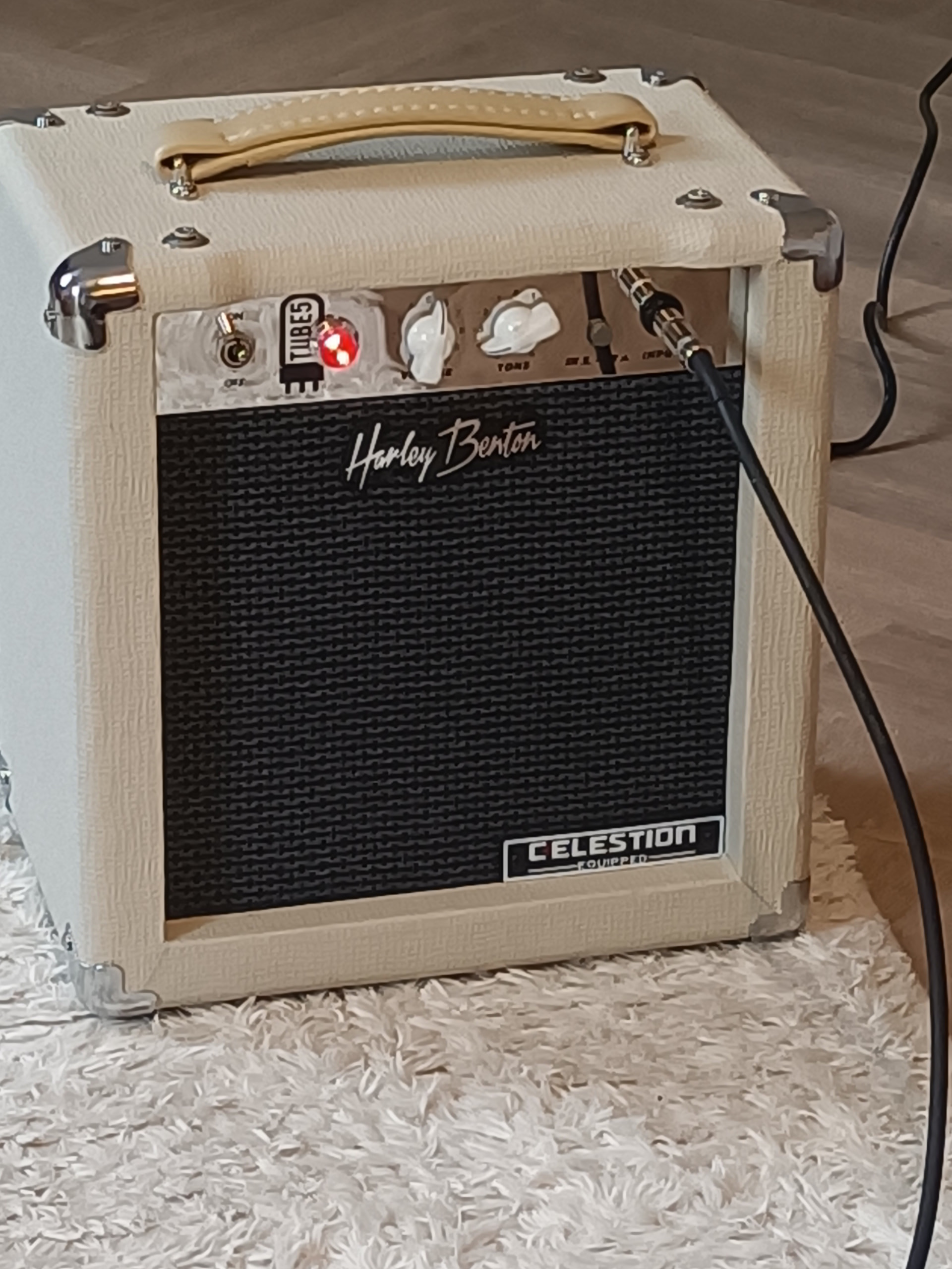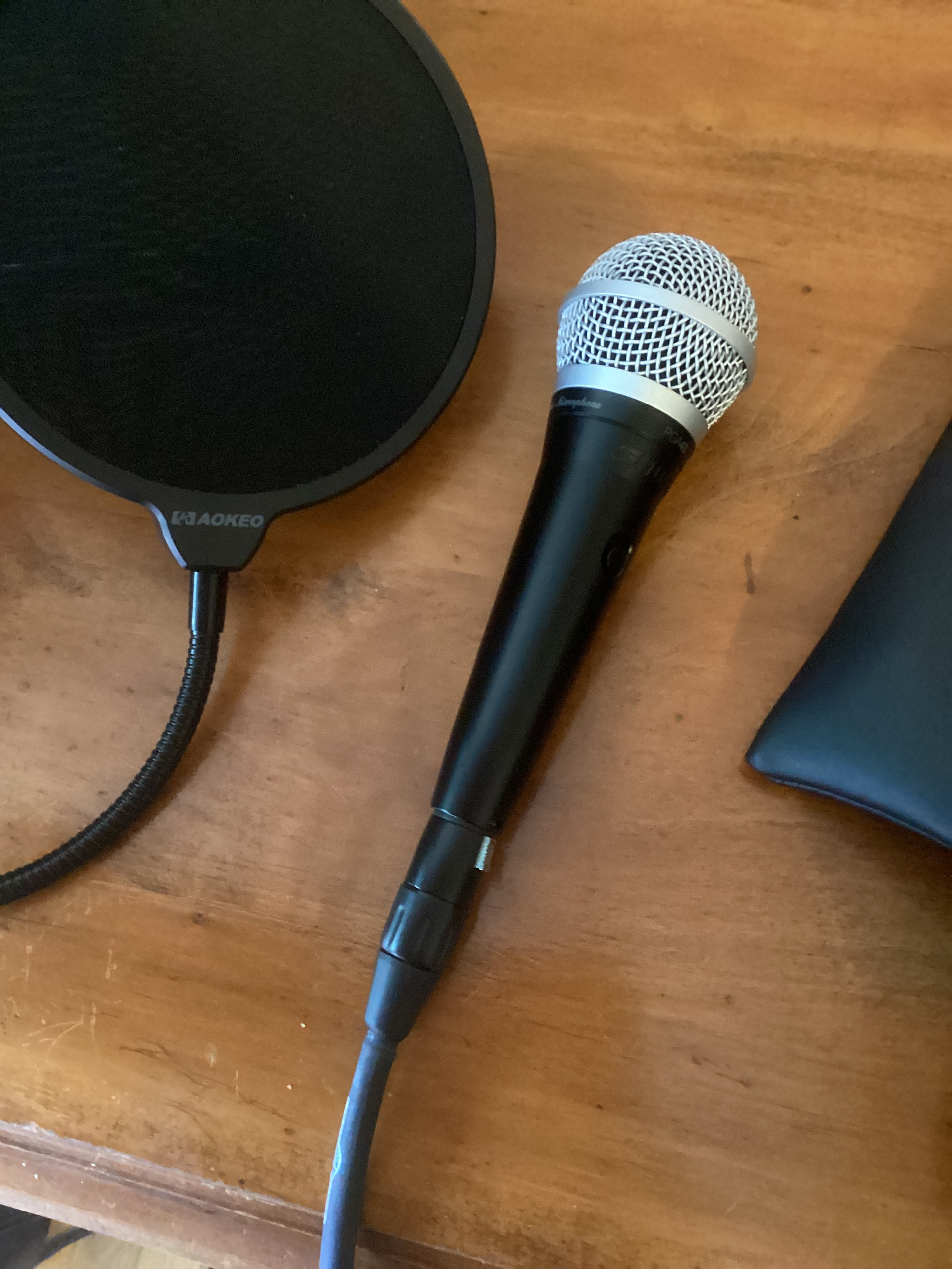 I also have a Fender Champion 20 amp, a Shure SM57, and a Blows Me Away Productions Bulletini. The mic I currently use is a Shure PGA48 (which is the same as an SM58, also from Shure) with an on/off switch.