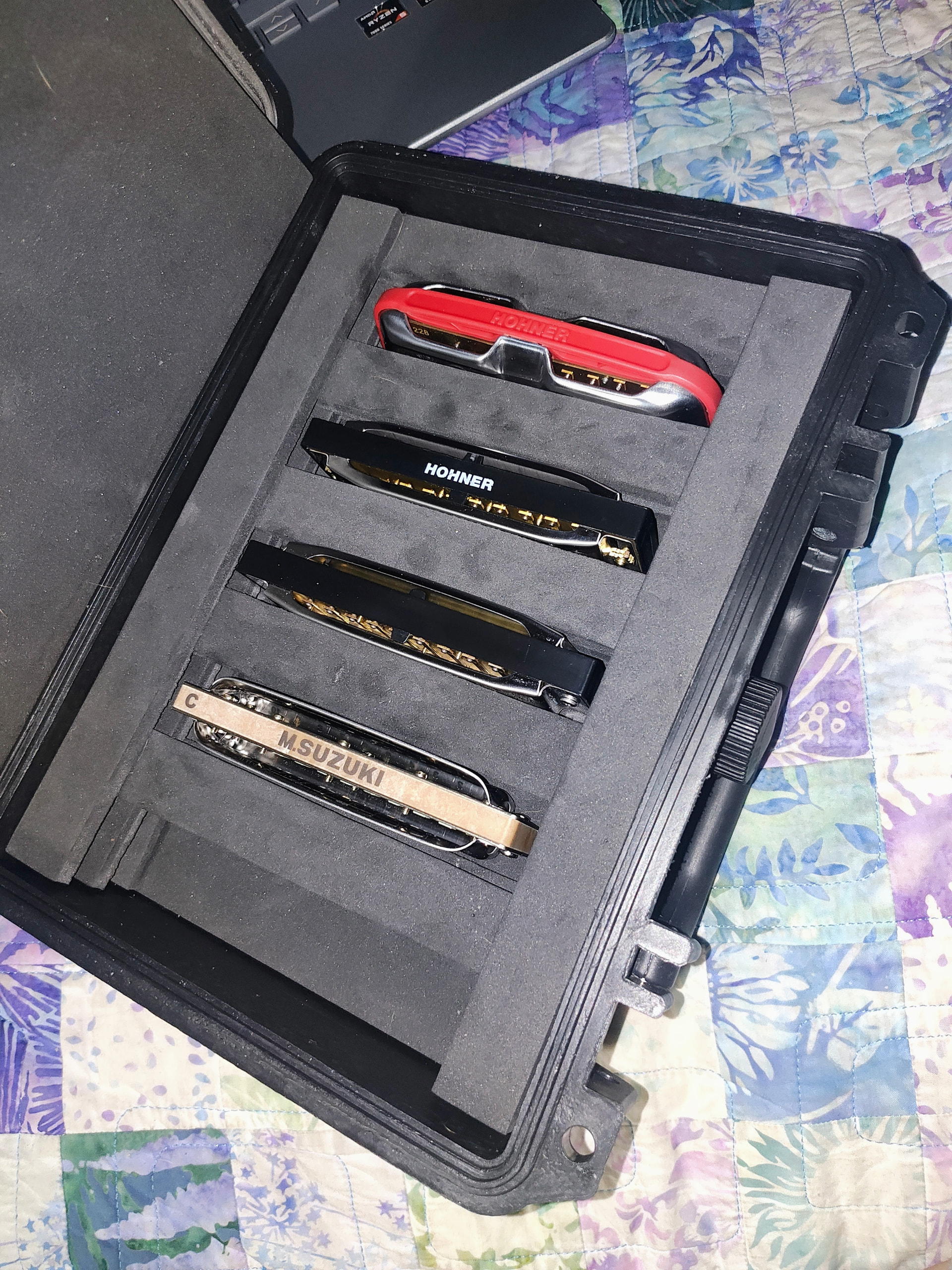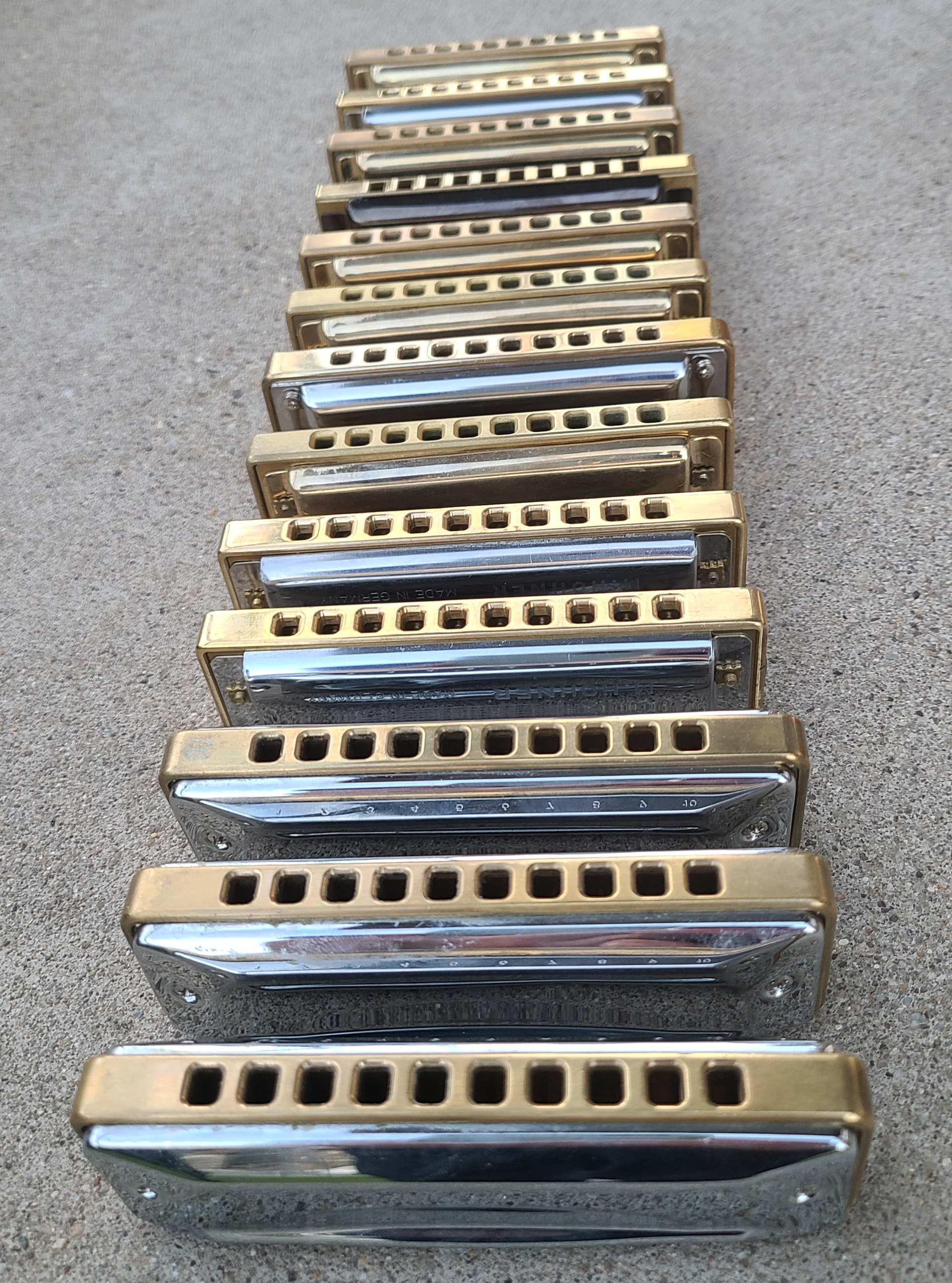 Started with the Fender. It’s great for what it is, a low end harp. Saw the Golden Melody and had to have it, so I bought that and the guy threw in the bluesband for free, I played the Bluesband once and retired it, don’t care for it. LOVE the Golden Melody, plays great, sounds great. Then being the collector I am I had to get another and I love the way the Manji looks and it had great reviews so that’s number 4.