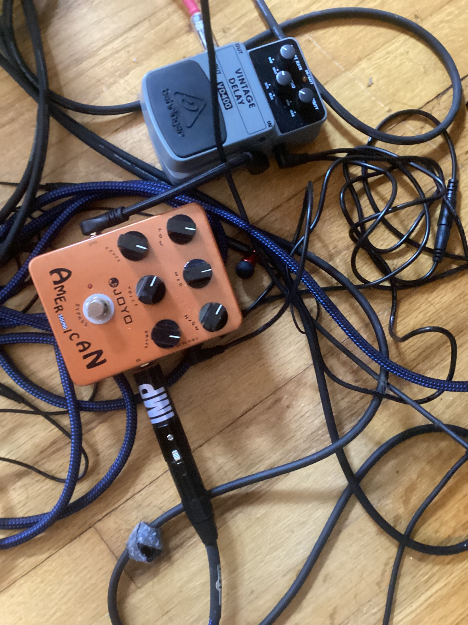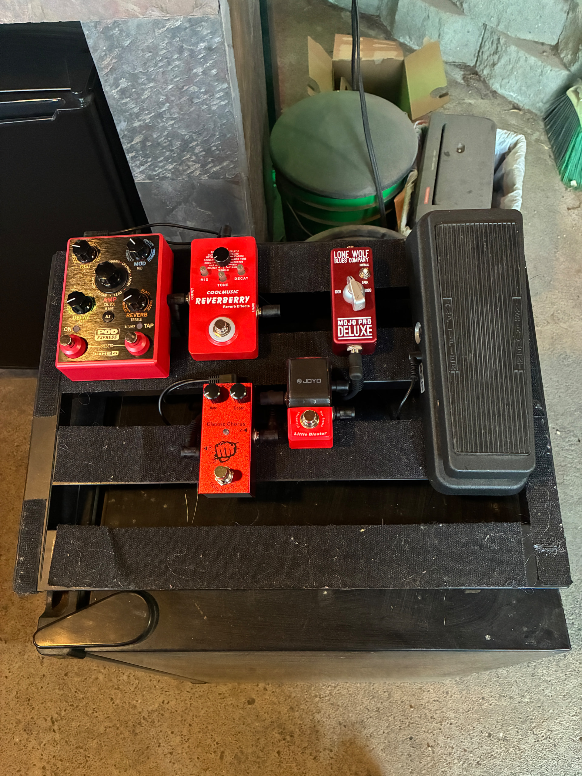 First pedal is a line pod 6 guitar express pedal second is a reverberry cool music pedal next is a chorus pedal (was given to me and don’t remember the brand name) then a joyo little blaster distortion pedal next a cry baby wah last is a lone wolf pad deluxe anti feedback pedal. Hopefully it will work good together.